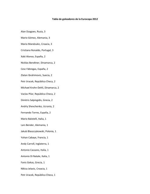 Tabla De Goleadores De La Eurocopa 2012 Alan Los Tiempos